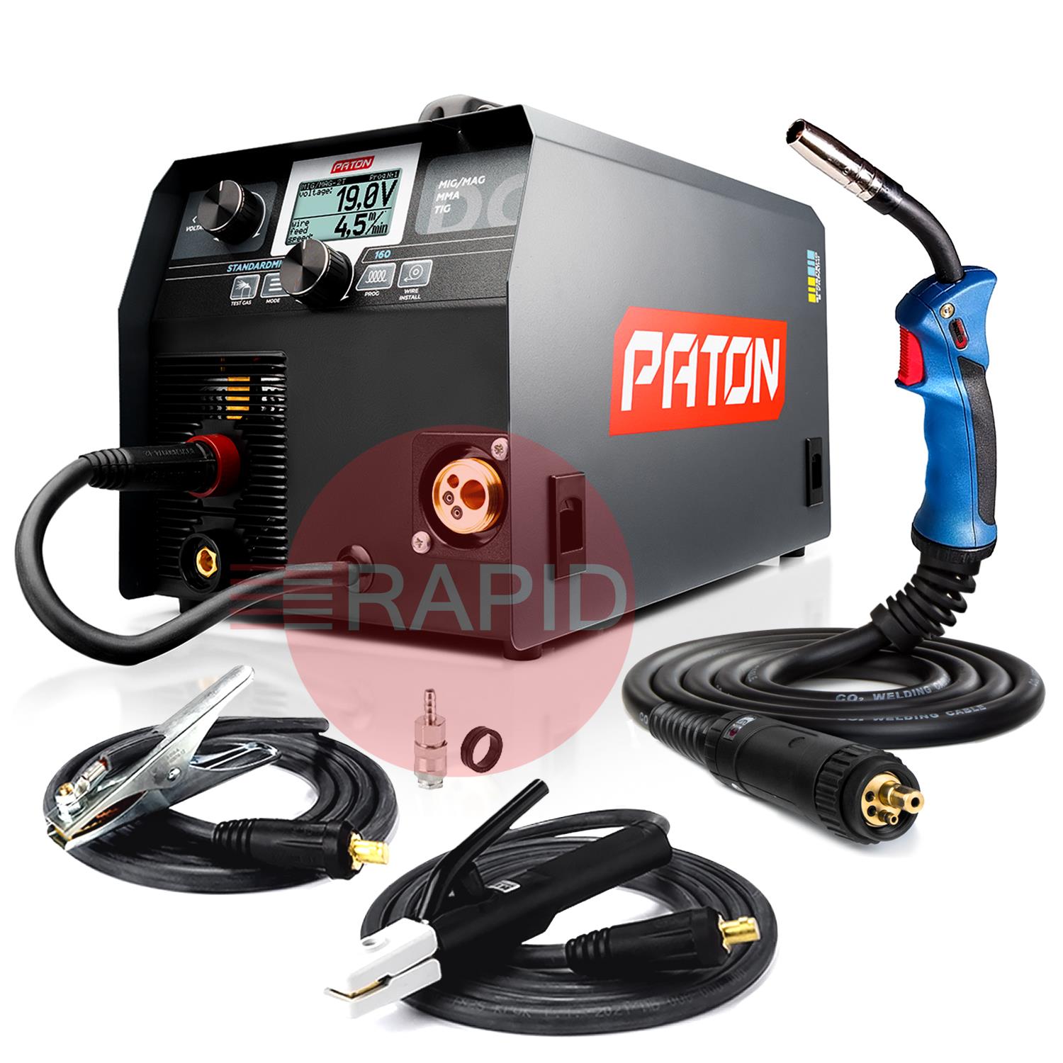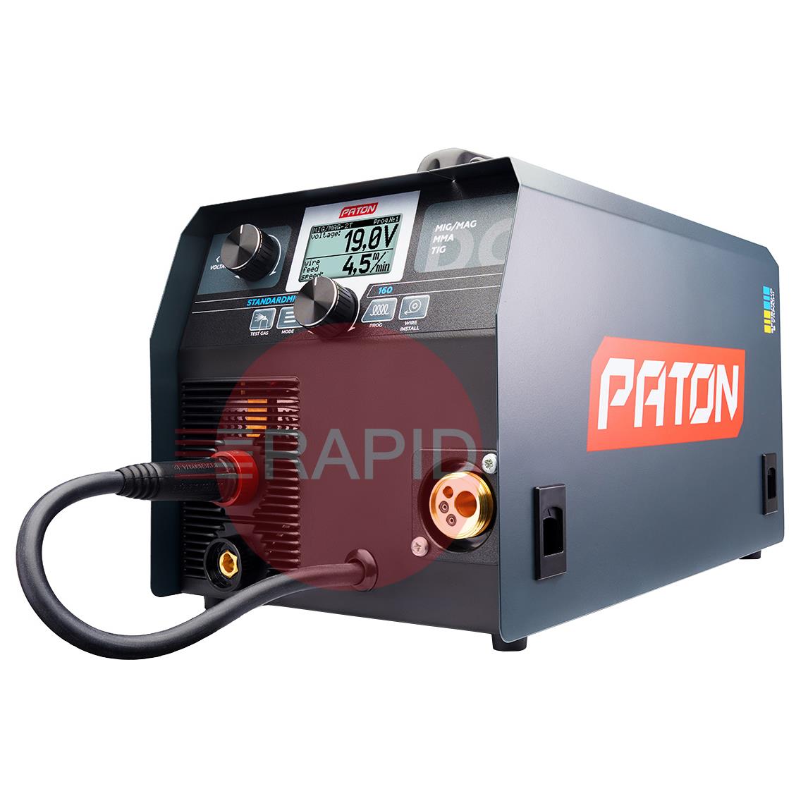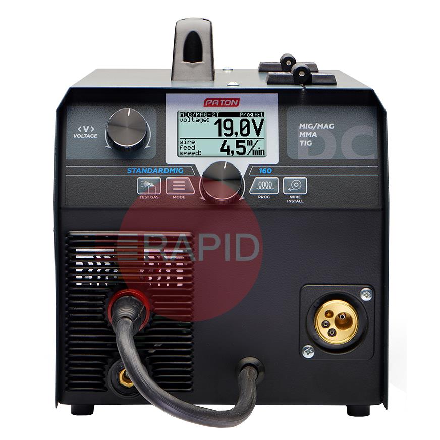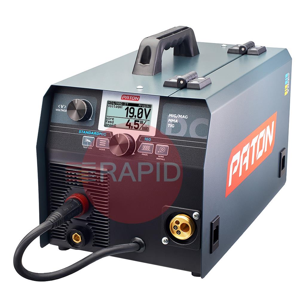The PATON StandardMIG 160 is designed for direct current welding of a wide range of materials in MIG/MAG, MMA and TIG modes with the PULSE function for each of these modes. The StandardMIG 160 features a 45% duty cycle and a 5-year warranty.
