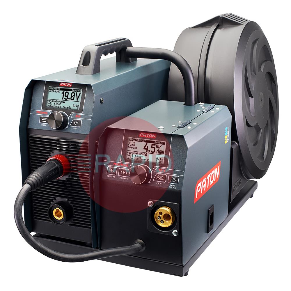 Digital semiautomatic inverter PATON ProMIG-350-15-4 W – is a device for professional use, designed for semi-automatic welding (MIG/MAG), manual arc welding (MMA), TIG DC, in shielding gases and mixtures thereof. In ProMIG-350-15-4 W, the machine offers an all-digital control system, thereby ensuring its versatility and the ability to fine-tune welding conditions. Expectancy increased load on the rated current to 350A, allows any electrode diameter from 1.6 mm to 6 mm, and conducts semi-solid welding wire with a diameter of 0.6 to 1.4 mm.