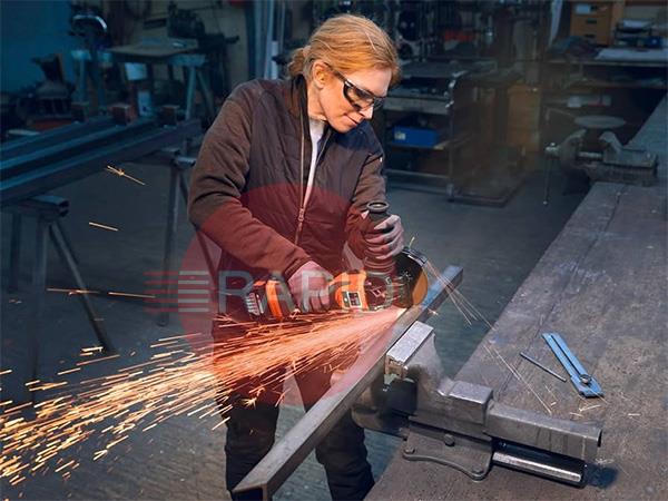 1 Tool-free quick-clamping nut, 1 Inner flange, 1 wheel guard, 1 anti-vibration handle, 1 safety hood for cutter, and 1 plastic tool case (L-BOXX 238).