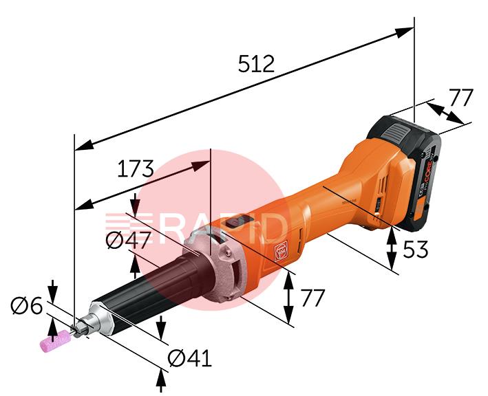 1 collet Ø 6 mm, Jaw spanner SW13, Jaw spanner SW17 and 1 tool case (XL-BOXX).