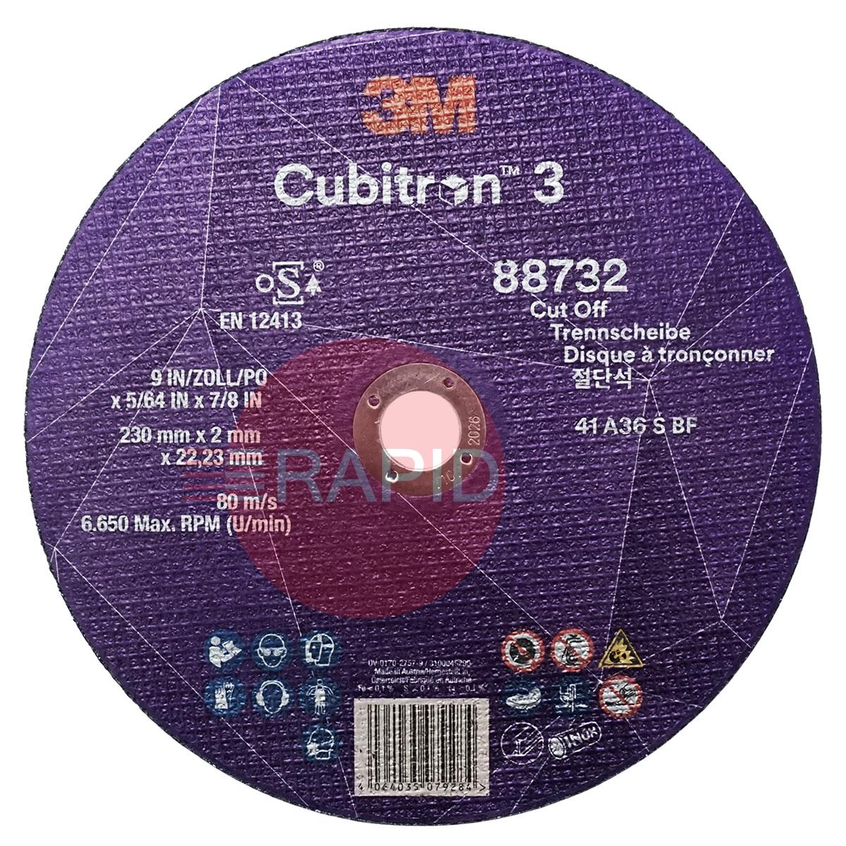 The 3M Cubitron 3 Cut-Off Wheel creates perpendicular cuts using the outer edge of the wheel, making it ideal for cutting through metal, including autobody or marine sheet metal, stainless steel tubing, exhaust pipes, clamps, rusted fasteners and more. Additionally, the 3M Cubitron 3 Cut-Off Wheel is powered by 3M Re-Engineered Precision Shaped Grain using proprietary breakthroughs in molecular bonding technology designed with sharp, angular structures that continuously fracture to form sharp points. These clean, sharp points help create an abrasive that slices faster, runs cooler, and lasts much longer than conventional abrasives. 3M Cubitron Performance Abrasives are made for professionals who need more from their equipment — so experience the next generation in abrasive performance by choosing the 3M Cubitron 3 Cut-Off Wheel.