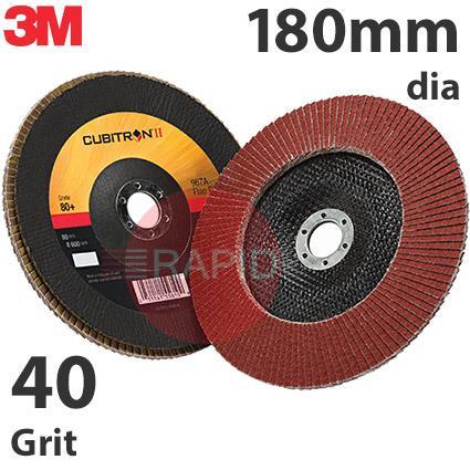 3M Cubitron II 967A 180mm (7") Flap Disc, 40 Grit - Conical (Box of 10)
