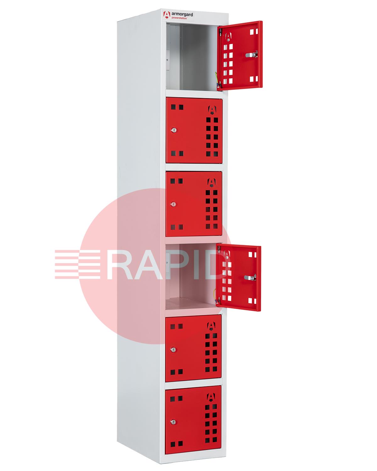 Battery charging locker bank, 1800mm x 450mm x 300mm, designed to charge power tool batteries whilst keeping them safe & secure - ideal for the site office.