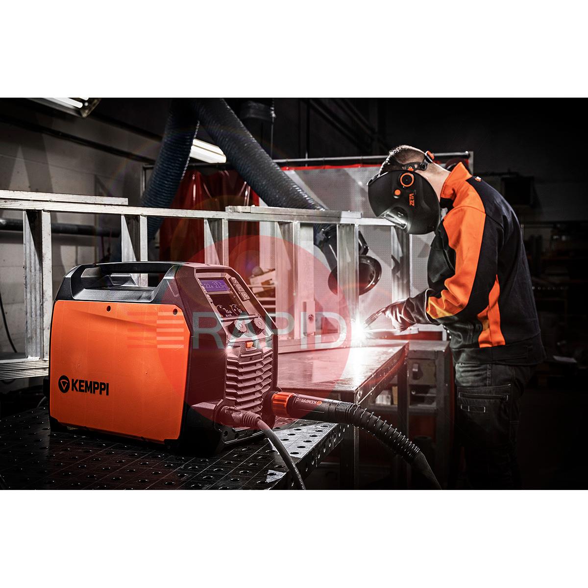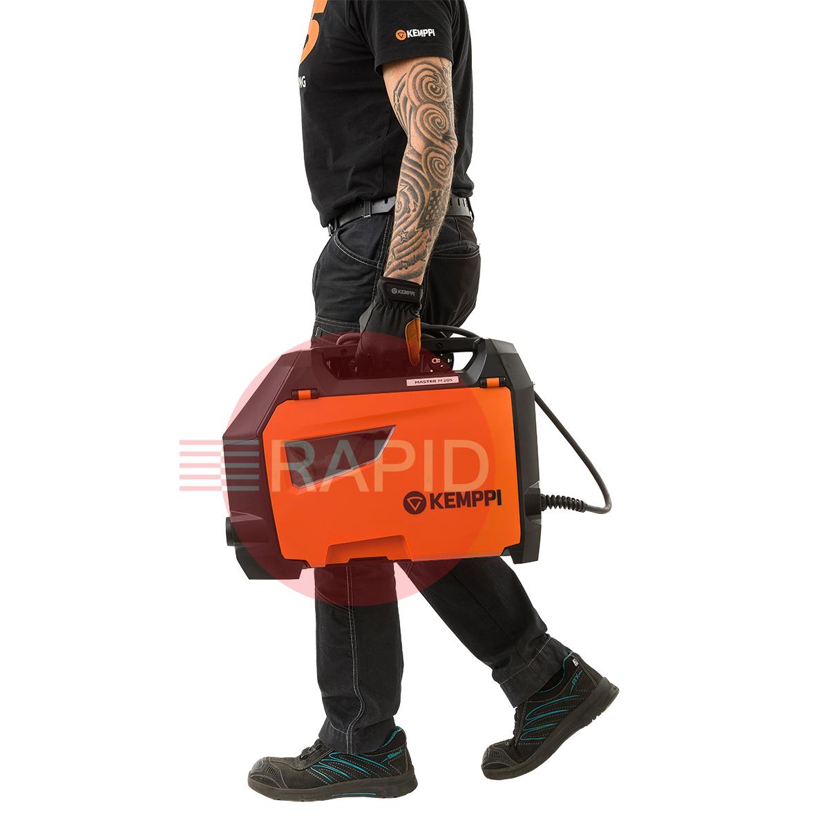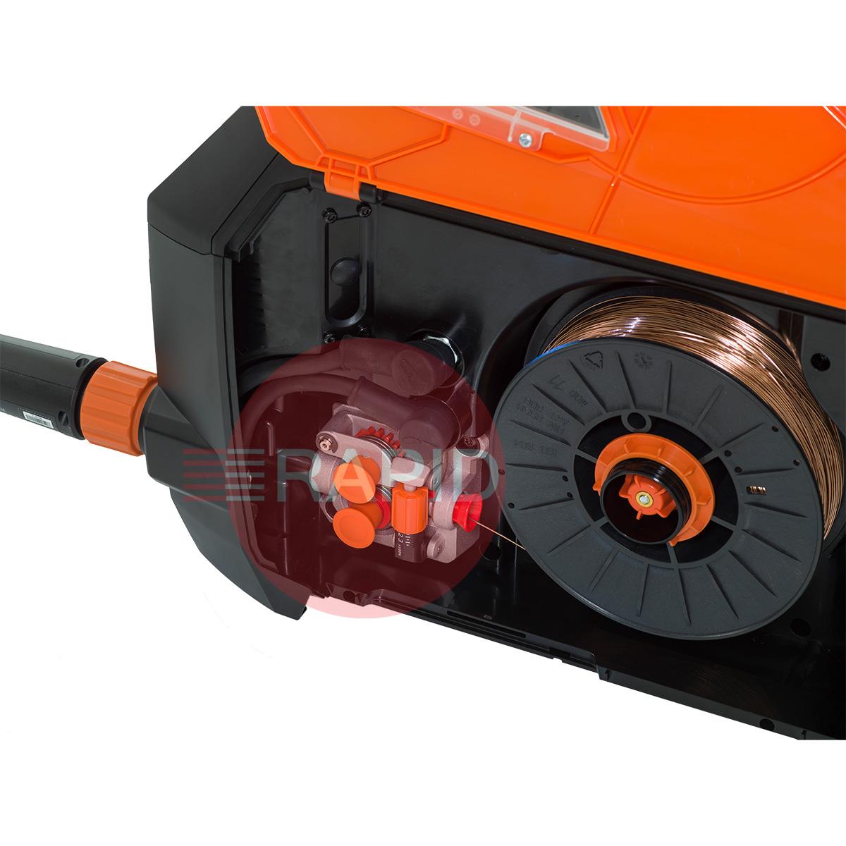 The Master M 323 set new standards for power and performance in a portable MIG welding machine. With a portable, lightweight design that's easy to carry, you'll enjoy having a portable MIG welder that can be moved wherever you need it. If you're working in tight spaces, the 7" LCD screen is bright and easy to read, while self-charging LED lights can be turned on to improve safety. They work with or without mains power.