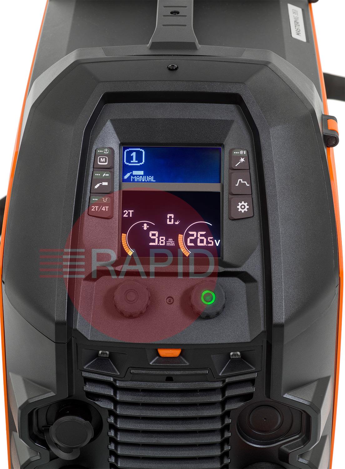 The Master M 353G’s are Compact MIG/MAG welders with manual and synergic (Auto) welding options. Provides 350 A with a 40% duty cycle. Intelligent welding parameter setting with Weld Assist. Colour LCD and LED work lights for excellent user experience. Includes work pack welding software programs including Fe, Ss, Al, CuSi, CuAl, Fe Metal, Fe Rutil, and FC-CrNiMo materials. Suitable for generator use.