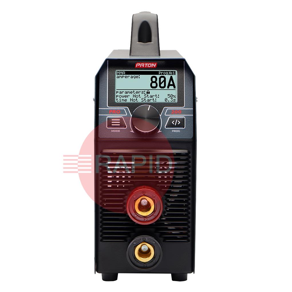 The PATON PRO-200 is a compact 200A arc welder, ideal for professional and industrial welding works. This inverter welder is also capable of TIG Lift and MIG/MAG welding after the purchase of a wire feeder. The device's small size makes it very mobile. The PATON PRO-200 welder has a work stabilisation system installed, allowing it to be powered by a generator. The 200A output allows the use of electrodes from 1.6mm to 5.0mm in diameter and semi-automatic welding with solid wire from 0.6mm to 1.0mm (MIG/MAG welding is possible after purchasing a wire feeder). The PRO-200 features a 70% duty cycle and a 5-year warranty.