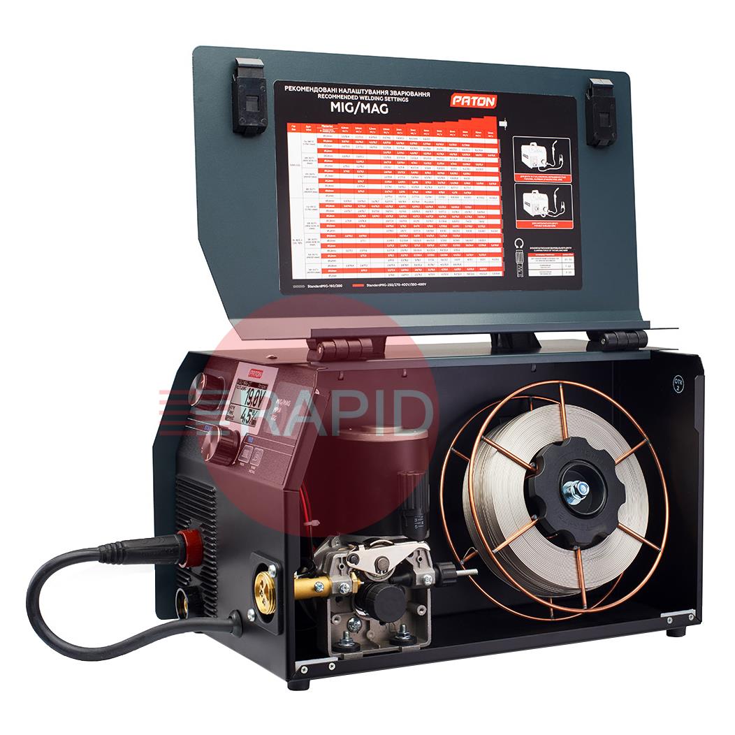The PATON StandardMIG 160 is designed for direct current welding of a wide range of materials in MIG/MAG, MMA and TIG modes with the PULSE function for each of these modes. The StandardMIG 160 features a 45% duty cycle and a 5-year warranty.