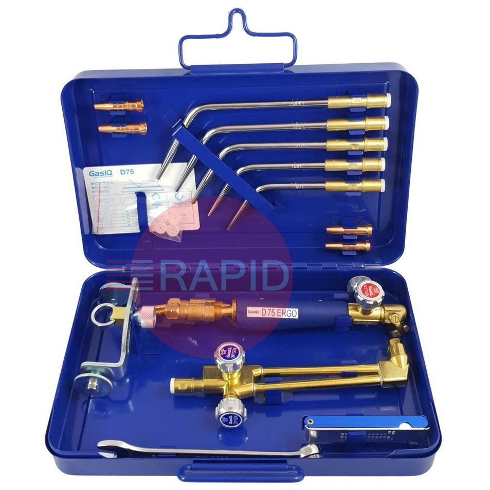 The D75 ERGO is very well suited to jobs in car workshops, farming, heating and plumbing, etc. Welding up to 10mm and cutting up to 100mm. The complete system consists of components for welding, cutting, heating and soldering.