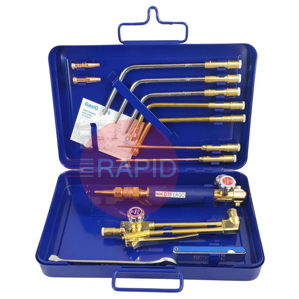 The D75 ERGO is very well suited to jobs in car workshops, farming, heating and plumbing, etc. Welding up to 10mm and cutting up to 100mm. The complete system consists of components for welding, cutting, heating and soldering.