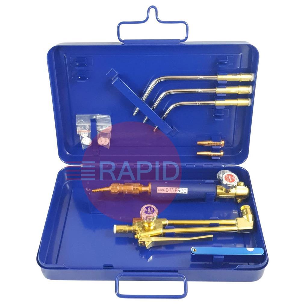 The D75 ERGO works according to the injector principle, which means that oxygen is sucked into the torch with fuel gas (acetylene). The advantage is that it is very easy to set the mixing ratio between the gases. The main component of the D75 is the handle. The D75 ERGO combines good design with excellent grip and control for welders.