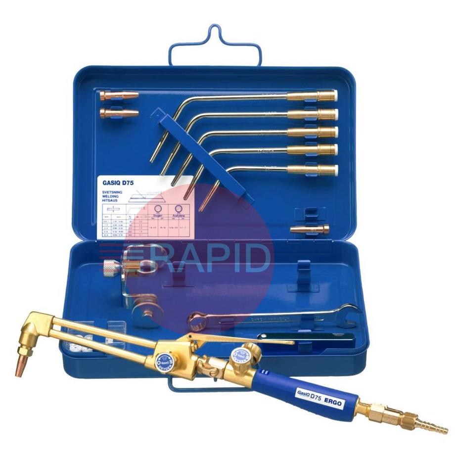The D75 ERGO is very well suited to jobs in car workshops, farming, heating and plumbing, etc. Welding up to 10mm and cutting up to 100mm. The complete system consist of components for welding, cutting, heating and soldering.