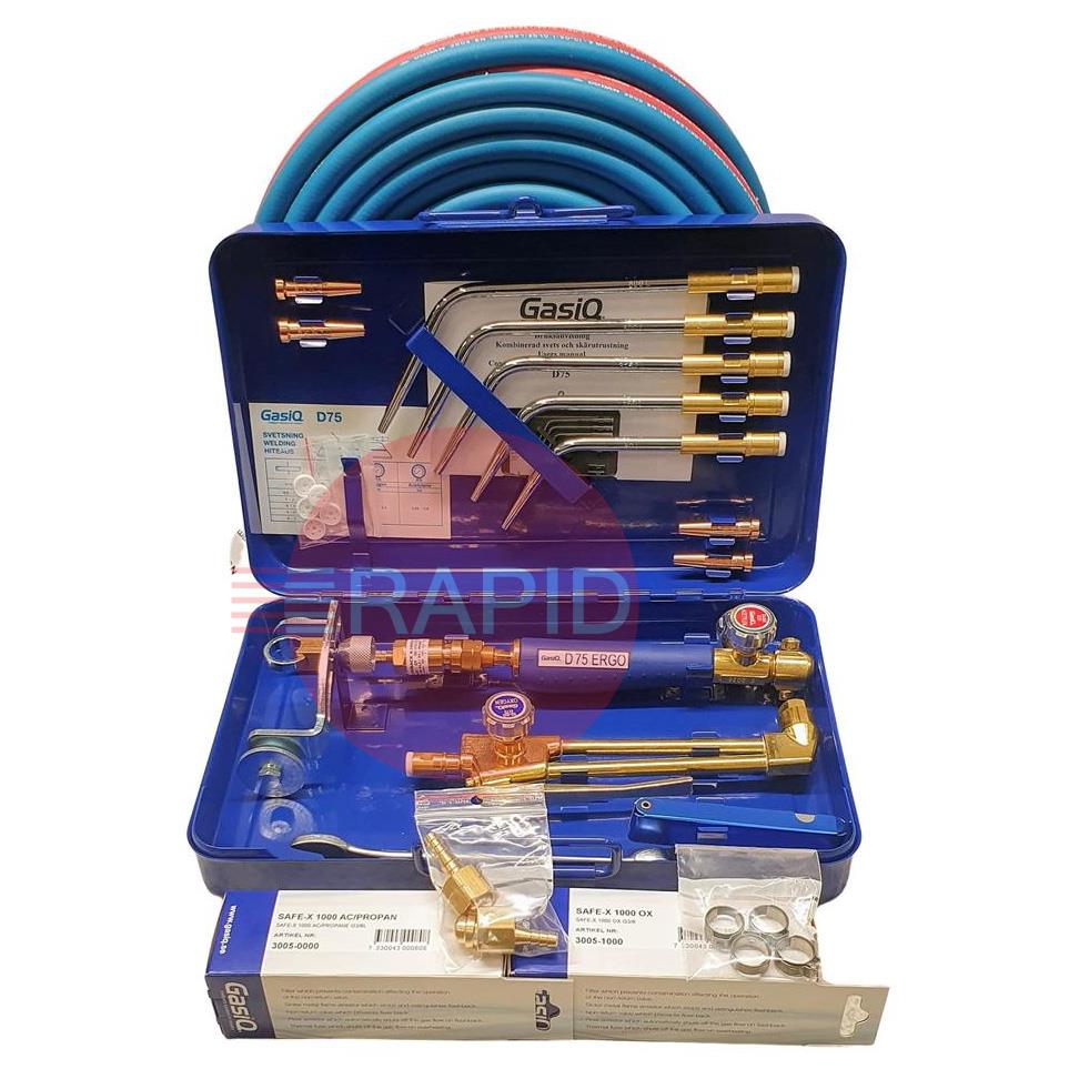 The D75 ERGO is very well suited to jobs in car workshops, farming, heating and plumbing, etc. Welding up to 10mm and cutting up to 100mm. The complete system consist of components for welding, cutting, heating and soldering.