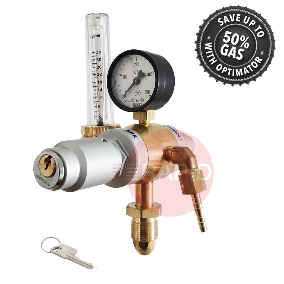 GasiQ Optimator I Argon/Mix Lockable Gas Saver Bottom Entry Regulator. 34Lpm. G5/8" Cylinder Connection. G3/8" Outlets.
