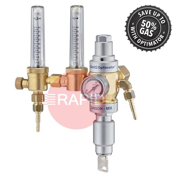 GasiQ Optimator II Argon/Mix Lockable Gas Saver Regulator. 30Lpm. G5/8" Bullnose Cylinder Connection. G3/8" Outlets.
