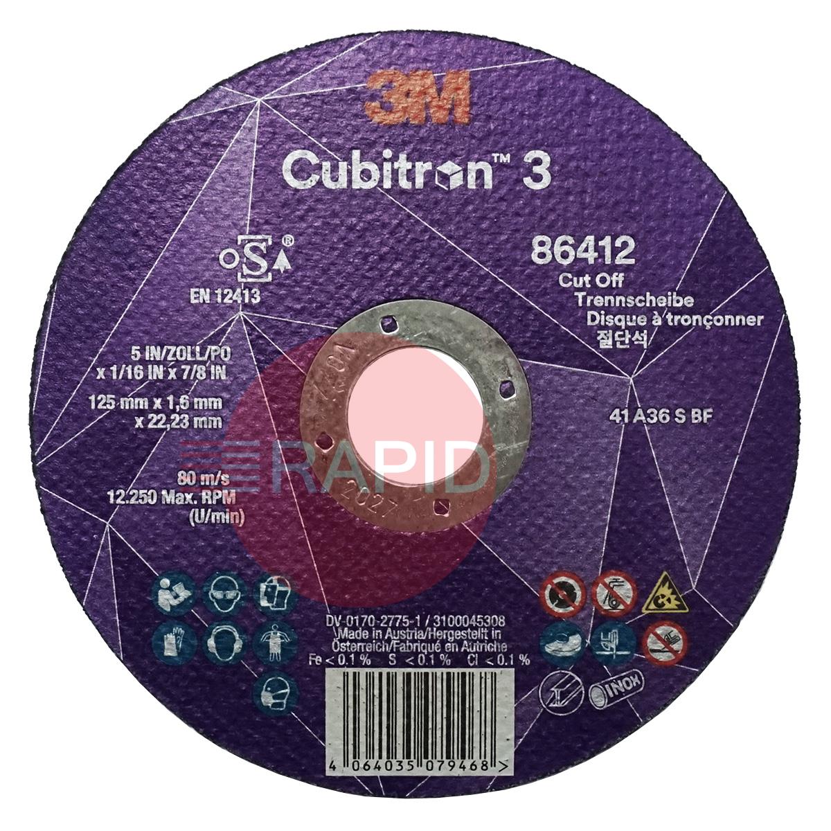 3M Cubitron 3 125mm (5") x 1.6mm Cut Off Wheel