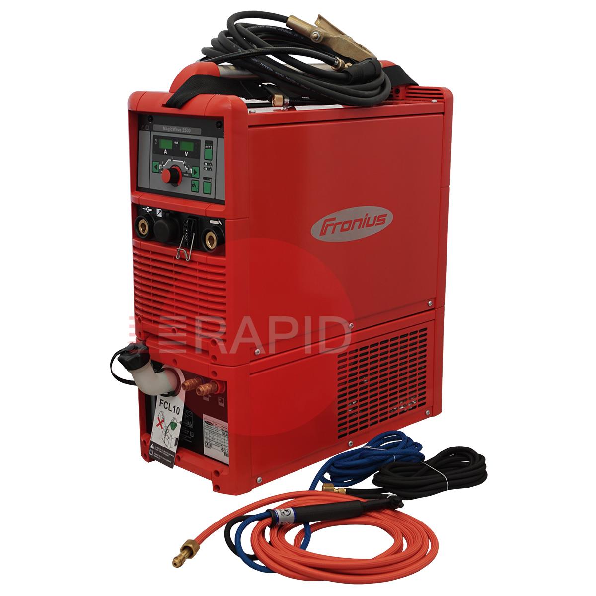 The 2500 model of the Fronius MagicWave series is one of the many digitised TIG AC/DC power sources in their line and is commonly used for aluminium purposes. Weighing at approximately 26.6Kg, the 2500 power source possesses a tremendously robust design and a remarkable state-of-the-art operating system.